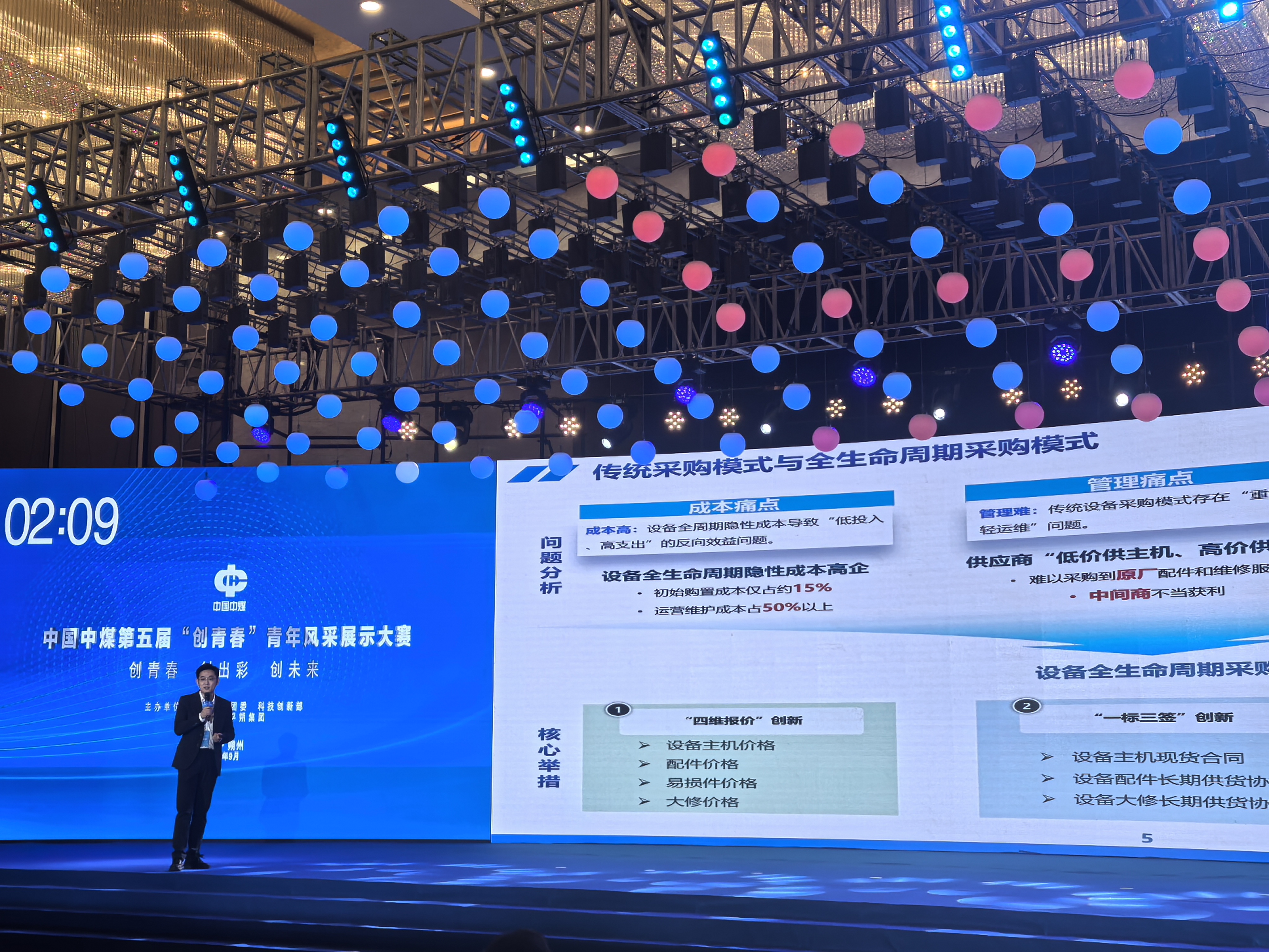 9月25日,中國中煤第五屆“創青春”青年風采展示大賽決賽在山西省朔州市圓滿結束。開發公司青年團體項目《中國中煤煤礦重要設備采購全生命周期綜合成本最優實踐研究》憑借創新性、前瞻性的研究視角與扎實的實踐成果,榮獲總決賽三等獎,成為本屆賽事中備受矚目的優秀創新成果。